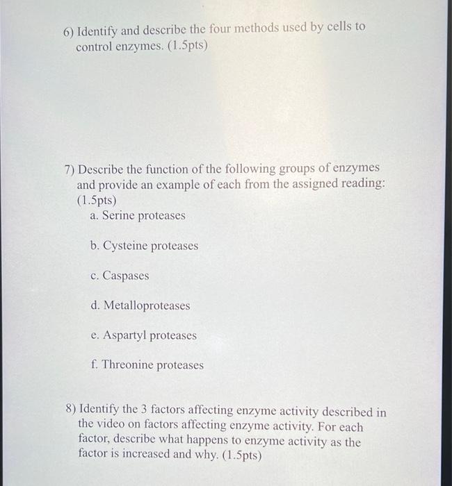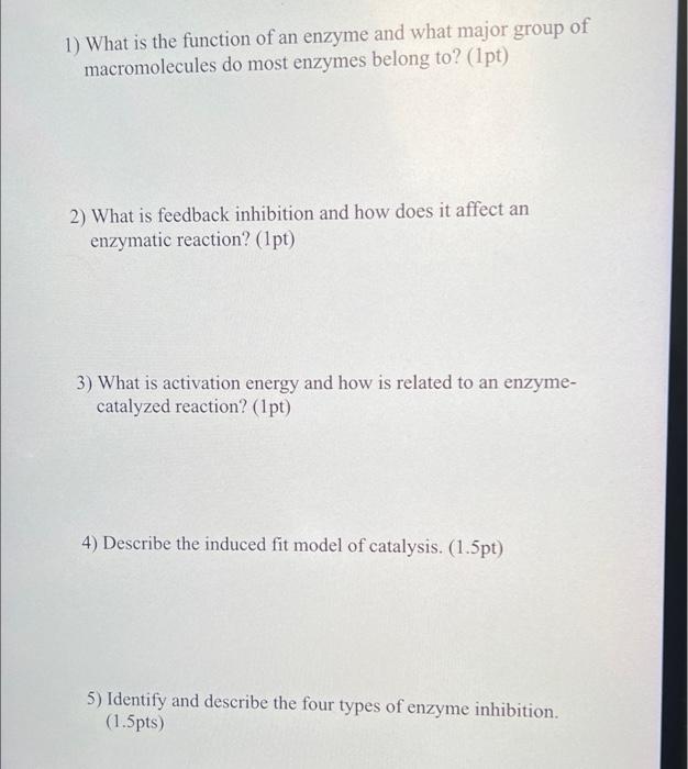 1 What Is The Function Of An Enzyme And What Major Chegg Com
